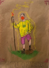 Eloni Bickham, King of Wands, Charcoal and Pastel on Paper, 18x24”, April 2022.